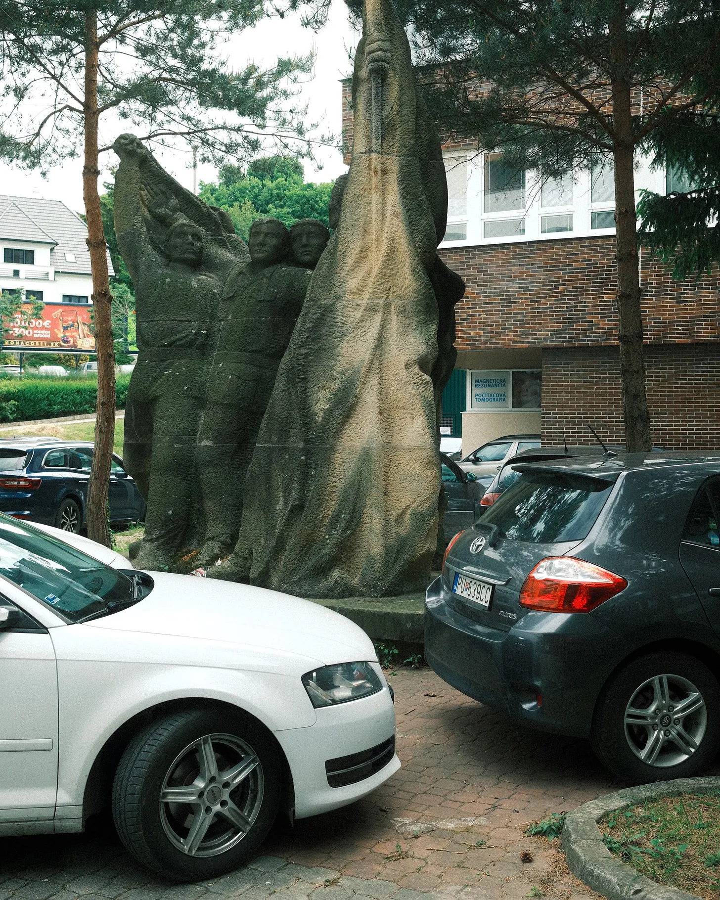 A city in all its ridiculous splendour: a Socialist-era monument to WWII in the middle of a parking lot.