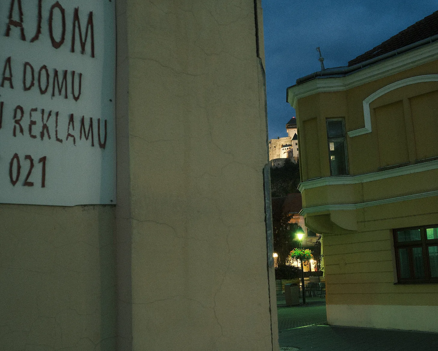 As I was walking, I decided to photograph the castle from wherever I was, in a sort of Garry Winogrand kind of way: flagrantly off the cuff, a disregard for any overt acts of composition, impulsive (Winogrand-ing?). I wanted to view the castle as something other than a dominant visual symbol, recasting it instead as one of the socialist-era monuments I saw tonight that were lost to time and attention, a status symbol of the has-been. Tonight, the castle was just as not-important as a grain silo or an old textile factory collapsing into ruin and unconsciousness, barely visible and on the fringes of our minds.